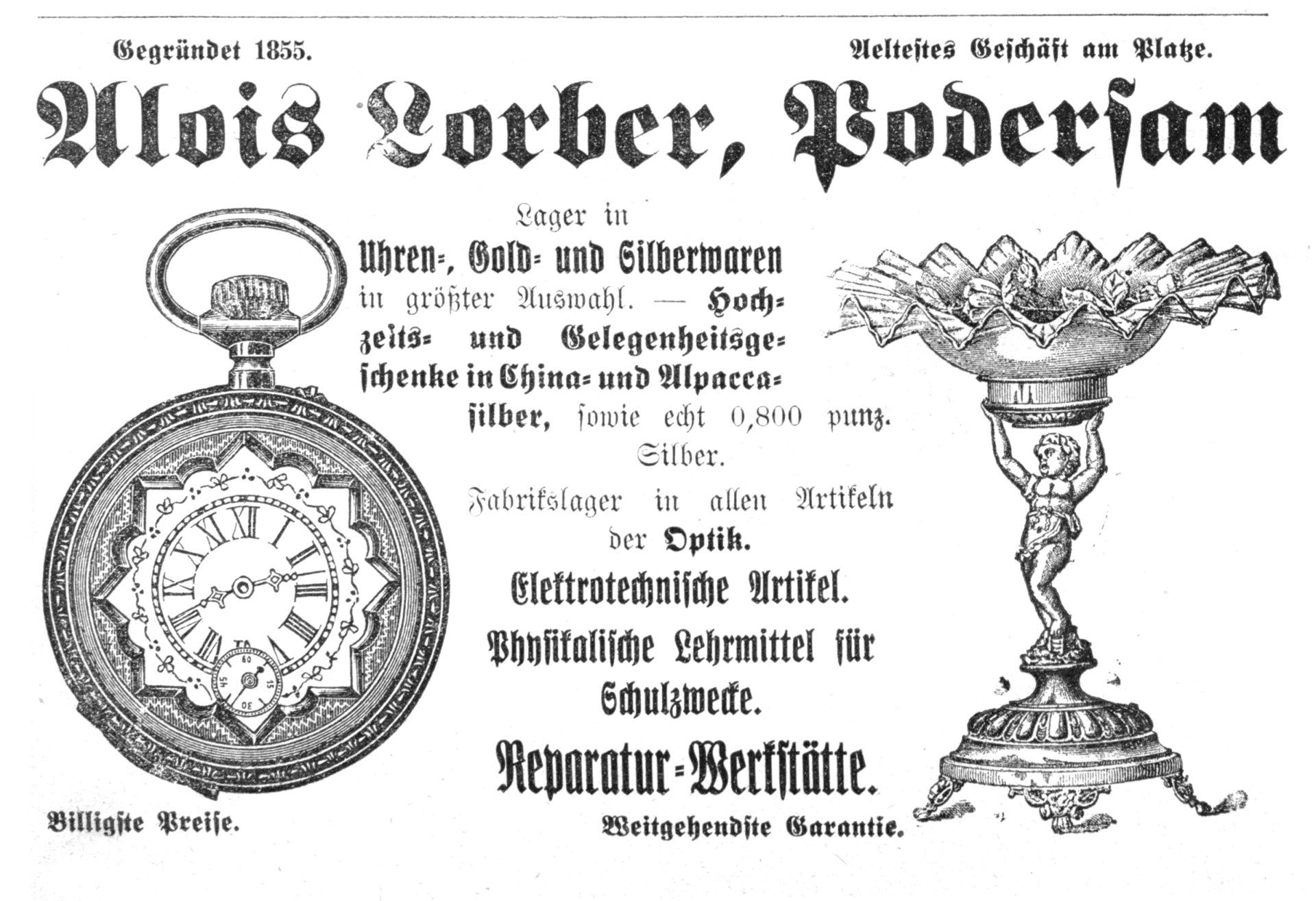 - Bernard Lorper, später Lorber (1831-1889), Häuslerssohn aus Wilkau, eröffnete 1855 als Uhrmachermeister ein Geschäft in Podersam, das sein Sohn Alois weiterführte.